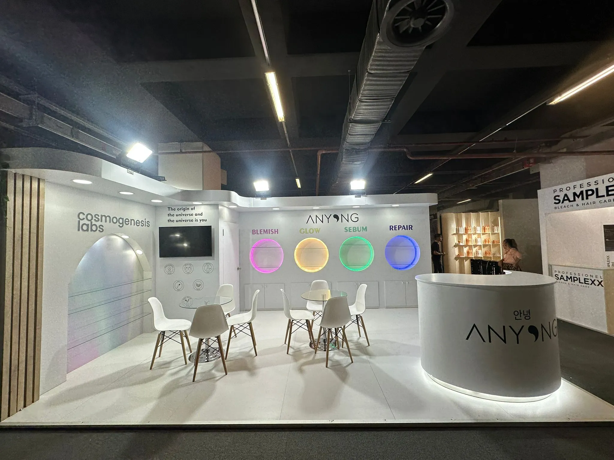 Anyong markası için Uzak Doğu estetiğinden ilham alan, sade ama etkileyici bir fuar stand tasarımı oluşturuldu. Doğal dokular, dengeli alan yerleşimi ve huzur veren detaylarla marka kimliği fuar ortamına başarıyla yansıtıldı.