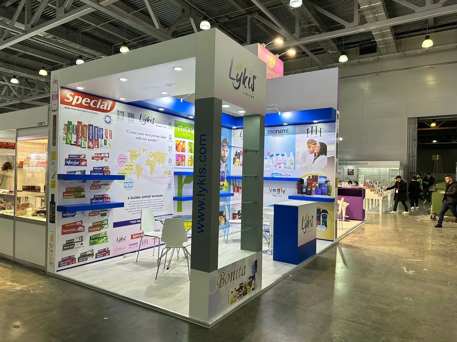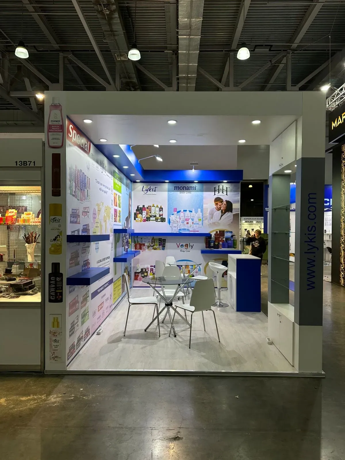 Lykis Intercharm için şık, modern ve zarif bir fuar standı tasarlandı. Sade çizgiler, kaliteli malzeme seçimleri ve markanın estetik anlayışını vurgulayan detaylarla, fuar alanında dikkat çekici bir marka sunumu yapıldı.