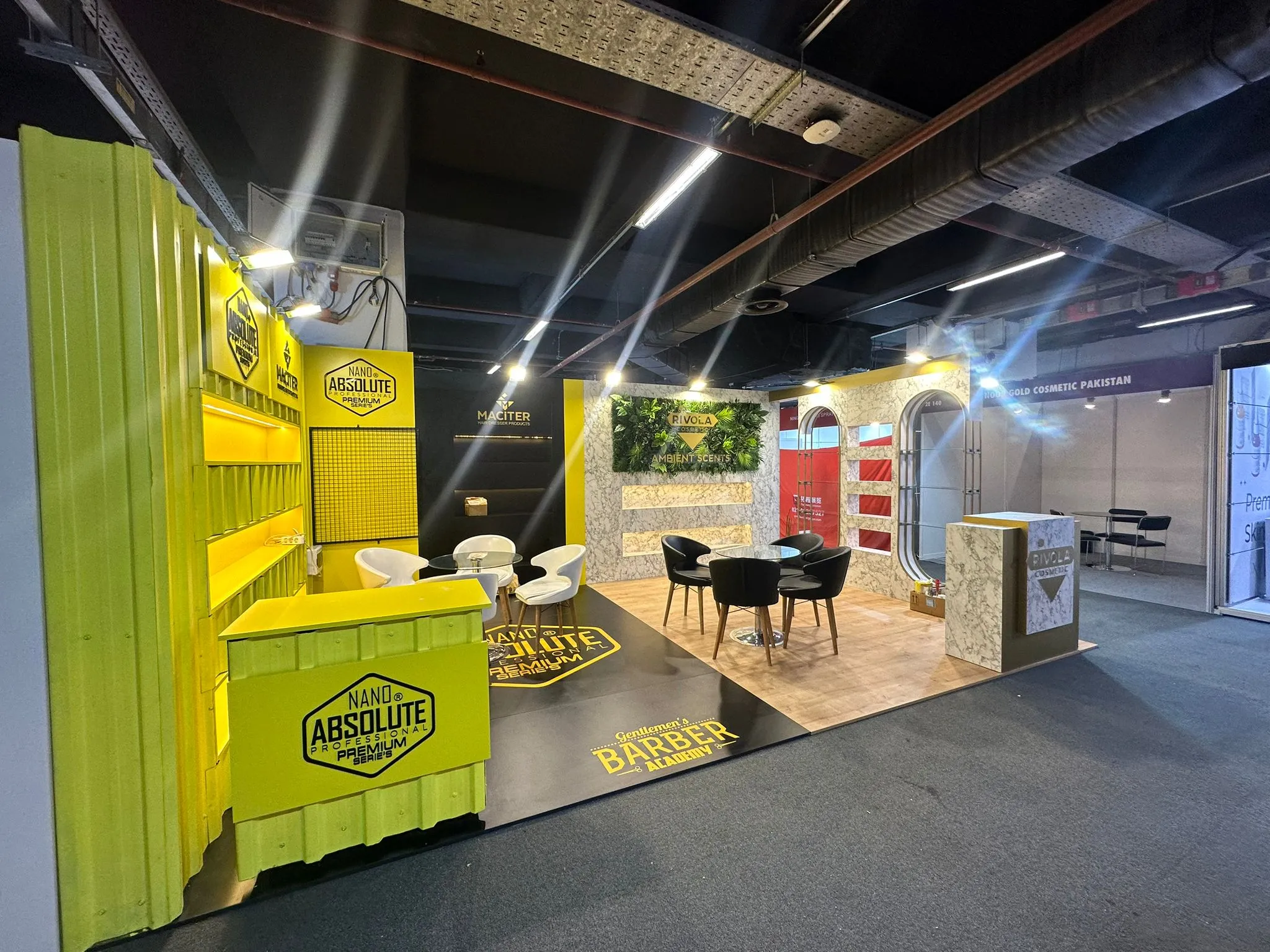 Maciter Kozmetik markası için zarif ve sofistike bir fuar standı tasarlandı. Doğal dokular ve modern detaylarla markanın kozmetik ürünleri için ferah ve davetkar bir ortam yaratıldı, ziyaretçilere şıklık ve kalite hissi verildi.