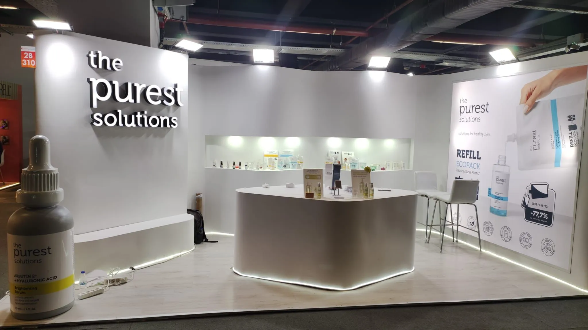 Purest markası için 2023 Beauty İstanbul fuarında, doğallık ve sade şıklığı vurgulayan bir stand tasarımı oluşturuldu. Temiz çizgiler, doğal malzemeler ve zarif detaylarla markanın saf ve kaliteli yaklaşımı etkileyici bir şekilde sergilendi.
